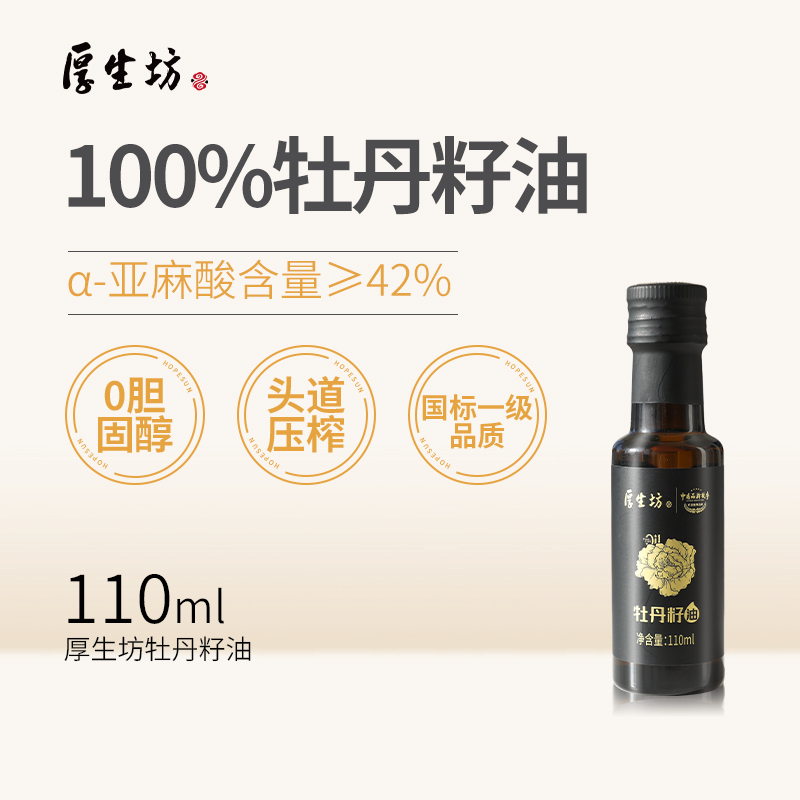 厚生坊牡丹籽油,点亮健康生活。自有种植基地,引进国际先进设备,自主种植+加工+销售三产融合,牡丹籽油不饱和脂肪酸达90%以上,保留牡丹籽纯正的天然营养,为您带来健康的滋养力量。